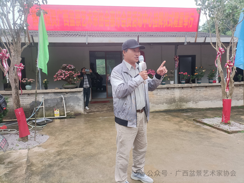 新晋广西盆景艺术家协会寨圩会员活动中心主任彭兵讲话